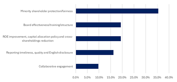 Against this backdrop, the Asian Corporate Governance Association (ACGA) conducted a survey1 of its Japan Working Group (JWG) institutional investor members following its annual Japan delegation in October 2025. The results highlight priorities that are particularly relevant to corporate directors: strengthening minority shareholder protection in takeover and buyout situations and enhancing board effectiveness and leadership. Both issues go to the heart of trust in the board as an effective steward of the company's future.